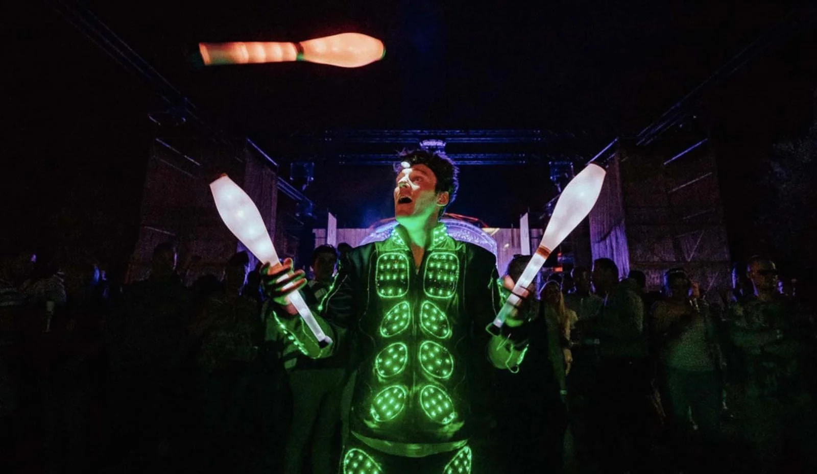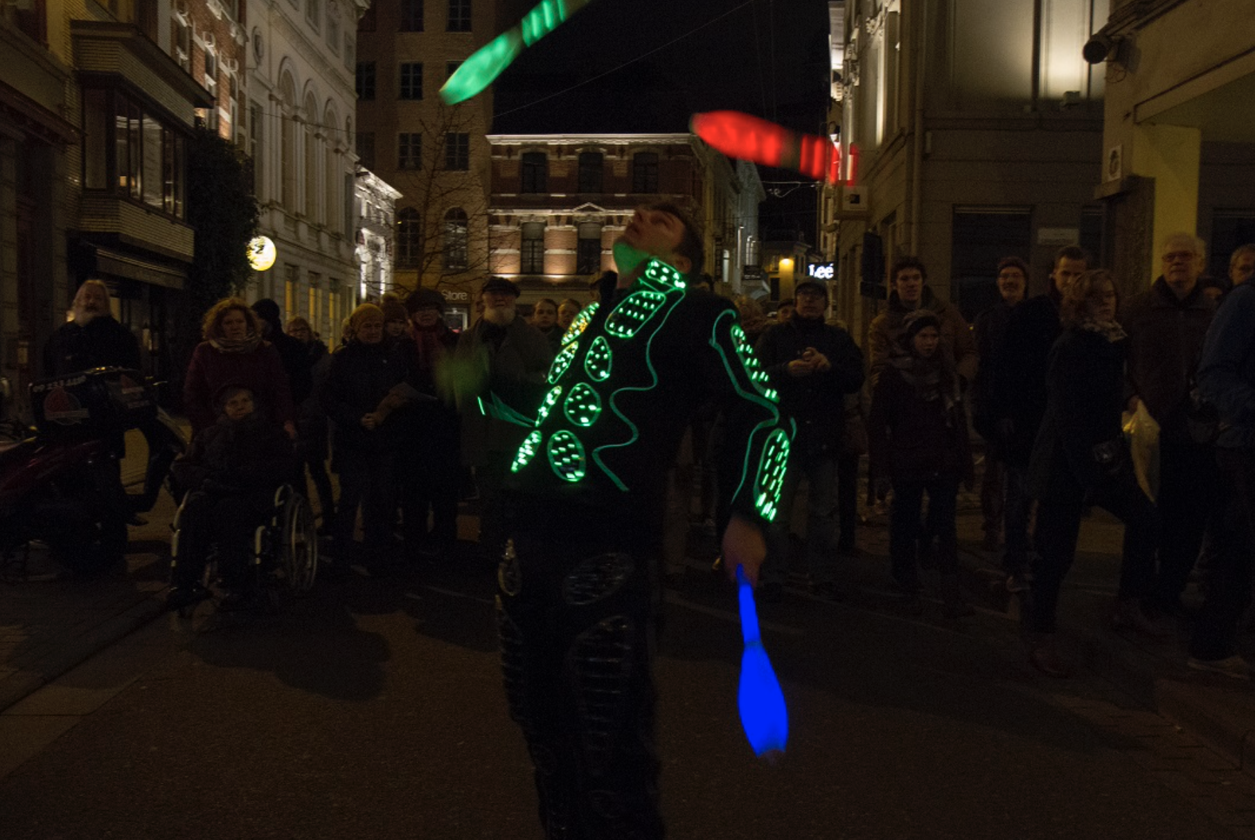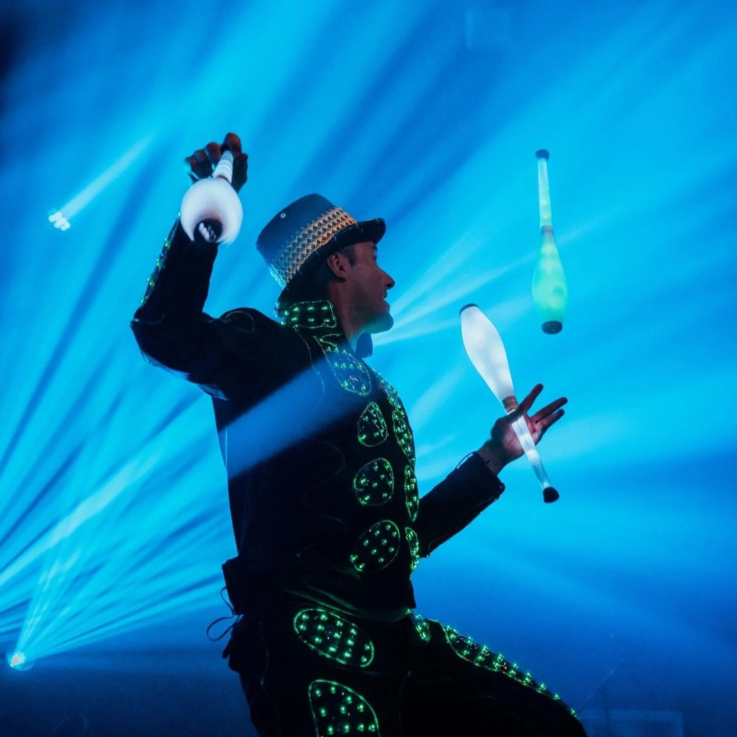LED jongleeract en lichtanimatie: ideaal indoor, winterevents en recepties. Combineerbaar met vuurshow.