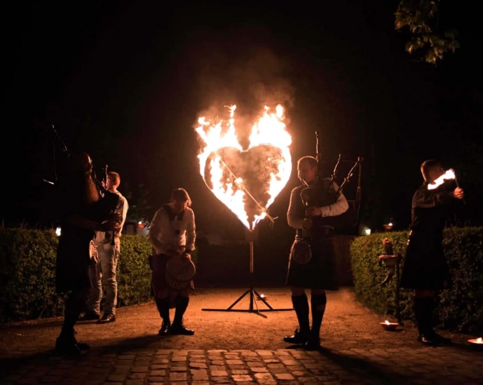 Vuurhart als ceremoniemoment: perfect voor foto’s en een symbolische “highlight”.